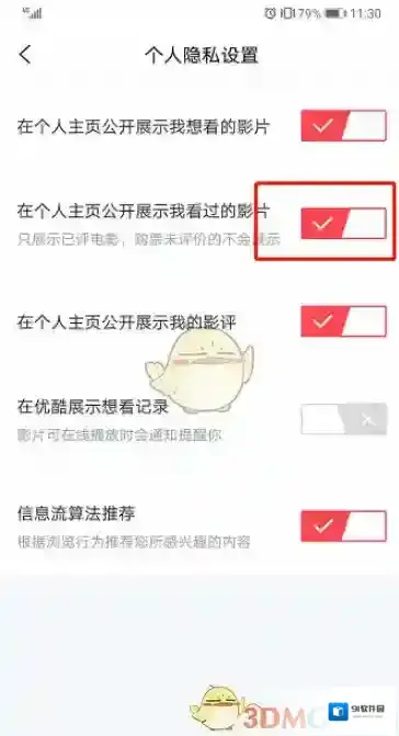 5、将在个人主页公开展示我看过的影片开关关闭即可完成