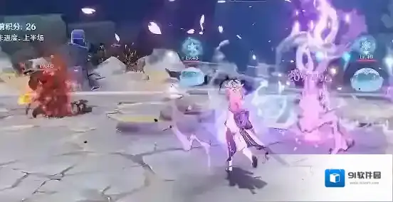 1、开启下半场,先将角色切换到雷神放个1技能。