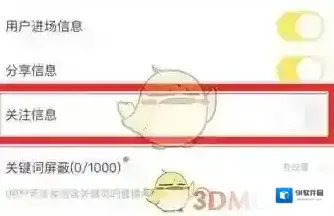 6、将界面中把关注信息右侧的按钮关闭,即可屏蔽掉频道公屏的关注信息。