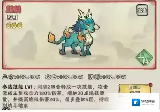 优点:闪避绝技流的主要输出手段是高质量狮子的攻击,养的好的狮子配合这套阵容一口十几二十万是没什么问题的,并且快速提高了狮子的攻击频率,麒麟的选择是他能快速回复能量能做到一回合一绝技从而快速触发伤害。