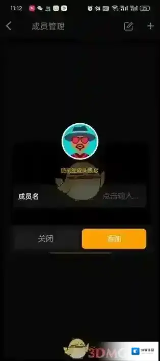5、最后点击过后在弹出的对话框中,我们输入成员名后点击添加即可。