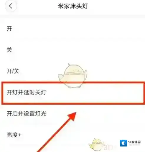 5、选择“开灯并延迟关灯”,如下图所示。