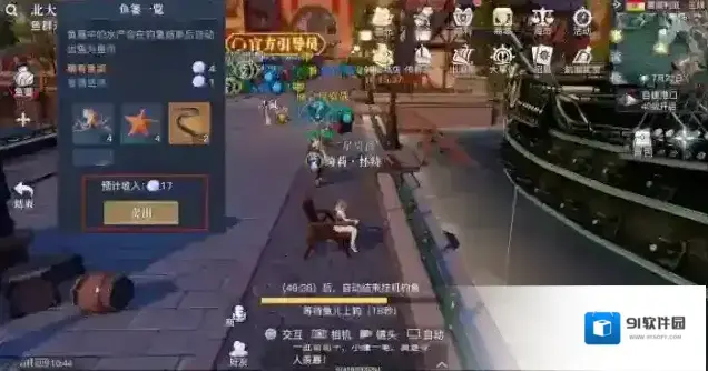1、闲暇之余就可以前往港口挂机钓鱼,操作一次即可持续挂机一小时,非常方便。