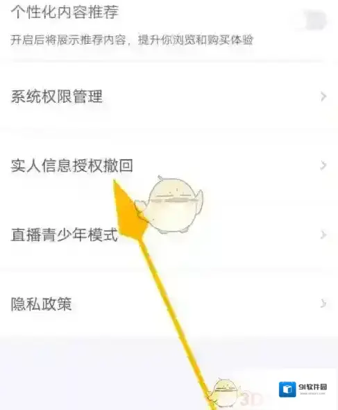 4、接下来,点击图中箭头标注的“实人信息授权撤回”