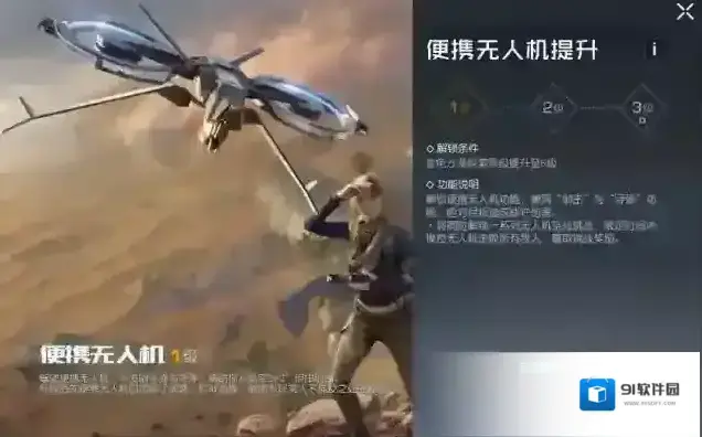 检查完耐久度,我们便可配置无人机啦。目前每个幸存者可配置四个无人机(3、4号位需要解锁),通过设置可对无人机快速切换,满足各种对战所需。自动无人机可谓好处多多,实用性拉满。而可以手动操作的便携无人机也丝毫不差。便携无人机 解锁与提升当我们在金色沙漠探索等级达到6级,就可以接取对应任务啦,完成任务可解锁便携无人机。