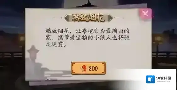 点击烟花后场地上会出现一只小纸人,点击可获得10000左右金钱,但是需要花费200勾玉,小纸人给的金币在场所有人都能领。