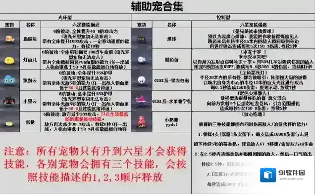 对于萌新来说有用的宠物只有“光环型”和“控制型”宠物两种,以下会列出目前游戏内所有的“光环型”宠物跟“控制型”宠物。萌新开始最推荐带的就是“脆脆块”,与它齐名的还有“飘飘云”和“灯点儿”,不过就前期来讲,除了“脆脆块”,其他两个宠物都作用不大(不过有的话还是带着吧),这里就不做过多解释,前期认准“脆脆块”带就行了。