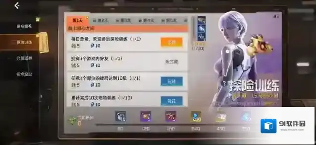 活动时间:等级达到10级后开启,持续16天活动介绍:完成探险训练中的每日任务可赢得积分并领取对应奖励。可获得内测限定背包挂饰-哔哔十七、改装蓝图等稀有奖励。日常活动曙光补给