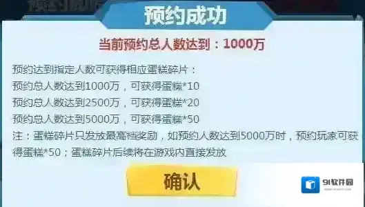 目前预约人数仅1000W,可以获得10个蛋糕碎片,目标尚未达成,同志们仍需努力!