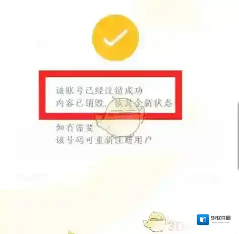 7、点击确定注销后,账号就注销成功了,能看到上面的提示。如图所示