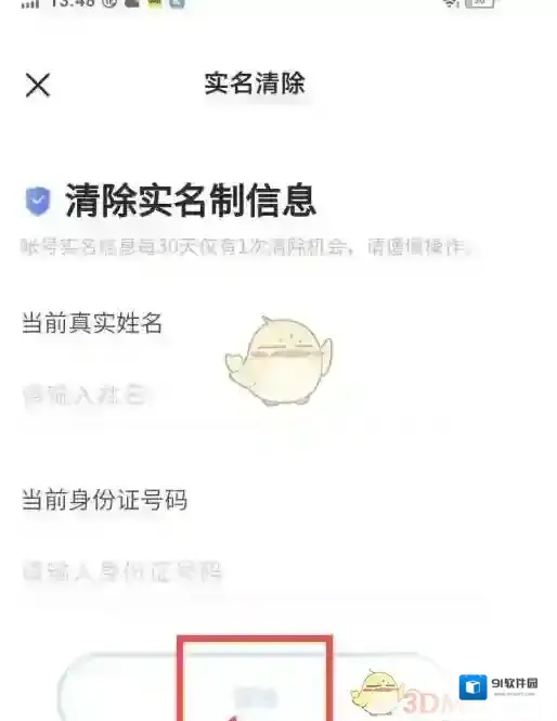 4、进到实名清除页面,输入实名信息,然后选择“清除”按钮即可。