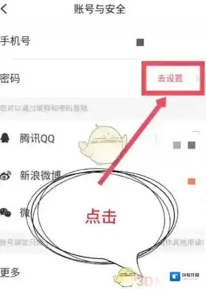 5、在“账号和安全”中点击密码的“去设置”,进行密码设置即可。