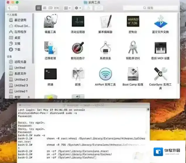 进入Mac OS 必须修复权限 驱动才能生效手动修复权限的方法:首先找到并打开终端,然后在里面输入sudo -schown -R root:wheel /System/Library/Extensions/xxx.kextchmod -R 755 /System/Library/Extensions/xxx.kextrm -rf /System/Library/Extensions.mkextrm -rf /System/Library/Extensions/Caches/rm -rf /System/Library/Caches/xxx.kext替换为驱动的名称