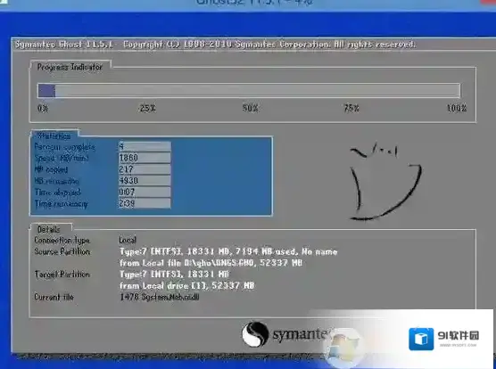 电脑重启后,系统会自动完成后续的程序安装,耐心等待一段时间即可进入到windows 7操作系统界面!