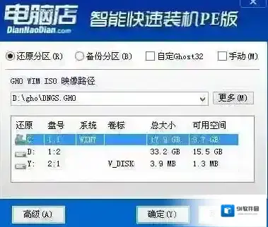 4、分区完成后,我们就可以打开一键装机工具进行Win7系统的安装了,这里很简单,只要选择要安装的Win7.GHO 然后选中C盘,确定即可。
