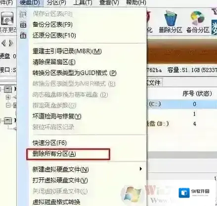 炫龙炎魔T1Ti装win7旗舰版步骤三:磁盘分区与系统安装1、打开上图的Diskgenius分区工具;打开Diskgenius后,选择笔记本硬盘,然后点击“硬盘”–“删除所有分区“,删除前确保资料已经转移,删除后,点击保存更改;