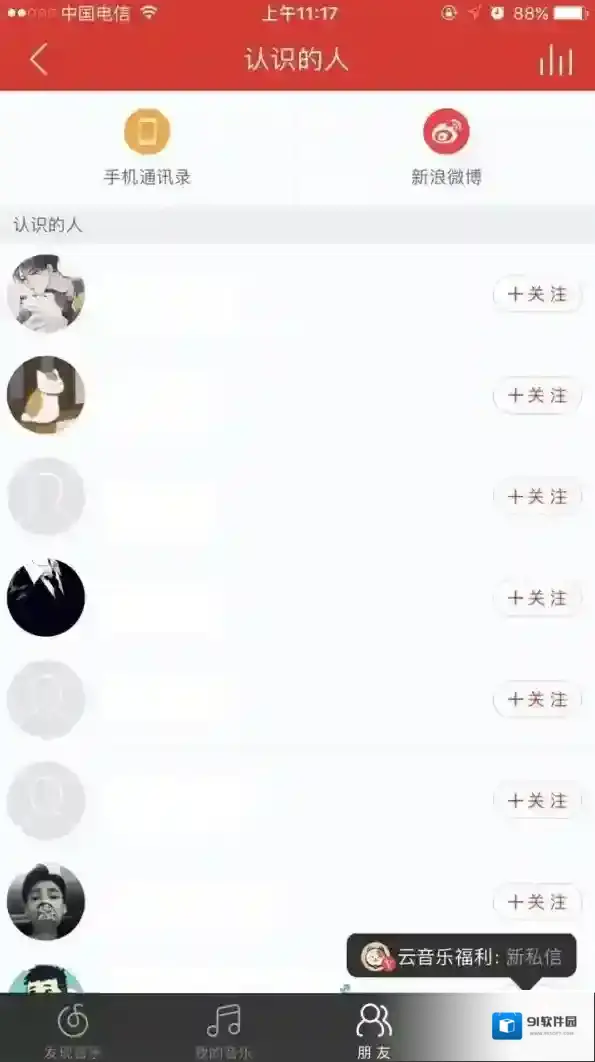 3、也可以自动搜寻设备中或者社交账号中的好友