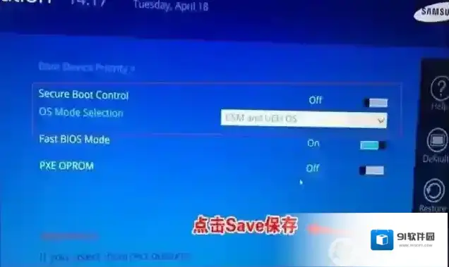 3、关闭安全启动后,BOOT选项中就会多出一个OS Mdoe Selection选项,我们将默认的UEFI OS改为CSM OS或CSM and UEFI OS,如下图所示;