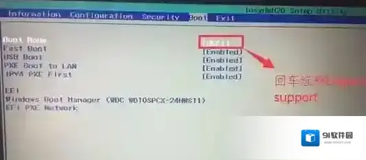 4、切换到Boot,把Boot Mode从UEFI改成Legacy Support;