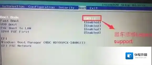 4、切换到Boot,把Boot Mode从UEFI改成Legacy Support;