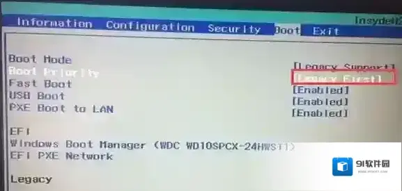 5、再把Boot Priority设置成Legacy First,按F10弹出窗口选择yes回车;