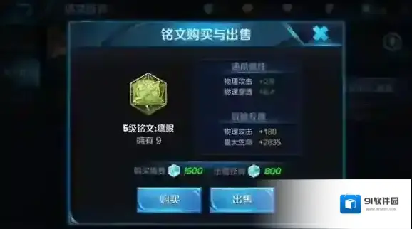 绿色鹰眼:物理攻击+0.9/物理穿透+6.4