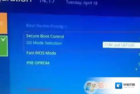 3、关闭安全启动后,BOOT选项中就会多出一个OS Mdoe Selection选项,我们将默认的UEFI OS改为CSM OS或CSM and UEFI OS,如下图所示;