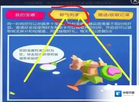 这两个图就是帮助了别人之后领取祝福值的方法,先是从我的宝藏中进去,再进入帮助列表,就可以看到你帮助过的人了,然后他的宝藏完成了就可以领到祝福值,一天可以帮助别人10次。