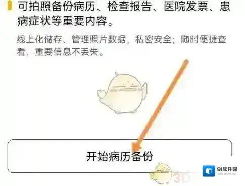 4、选择下面的开始病历备份选项。