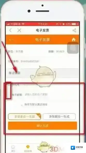 4、最后在推送位置里输入自己的手机号或是电子邮箱,在前方勾选后点击确认生成,这样电子发票就会发送到指定推送的邮箱或手机啦。
