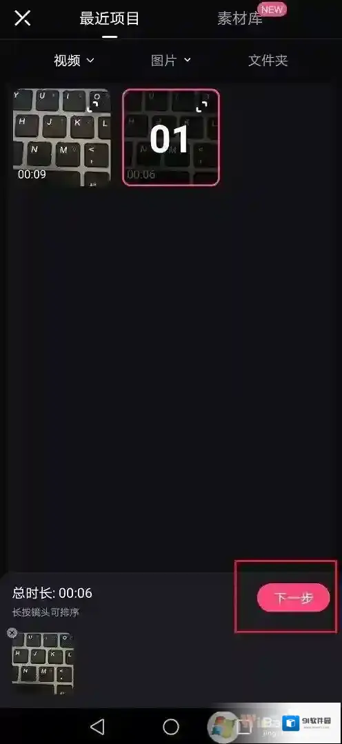 4、第四步进去之后,选择要使用的视频,点击下一步