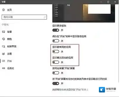 此时会看到文字前面多了一个空格,但只按空格不会有这个效果,因为系统会在重命名后直接消除前面的普通空格,而这个方法可以让空格得以保留。修改后就可以利用开始菜单排序规则(字符优先于字母)来让你喜爱的应用置顶,如果你觉得系统默认的最常用和最近添加影响你的最爱排名的话,也可以在设置中把这些功能关闭,如下图: