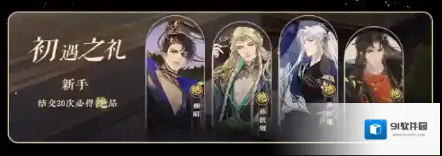 活动介绍:初遇之礼卡池首次结交10次必得妙品名士[奉渊],结交20次必在绝品名士[顾昭]、[拓跋煜]、[孙怀瑾]、[李睿]中随机获取一位