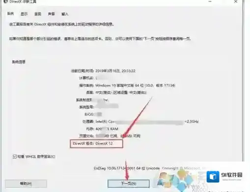 6、确认你的DirextX12是最新版,点击下一步,完成诊断。