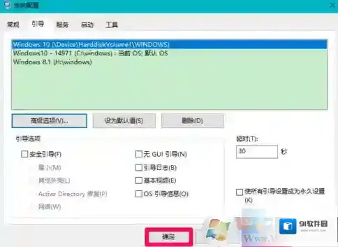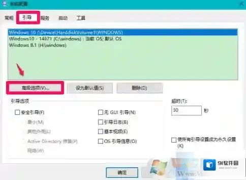 5、在系统配置窗口,我们点击引导选项卡下的高级选项(V);