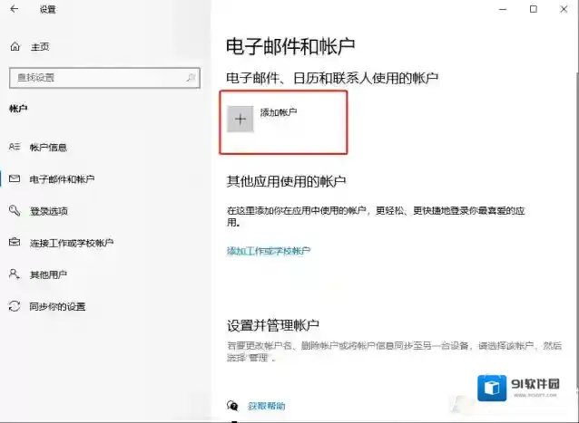 5.在右侧界面中开始添加账户,将microsoft账号输入即可完成。