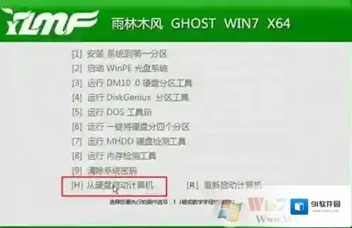 14、完成操作后,重启进入这个主菜单,输入H或点击从硬盘启动;