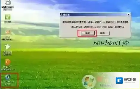 12、完成分区后,双击自动恢复win7到C盘,弹出对话框,点击确定;