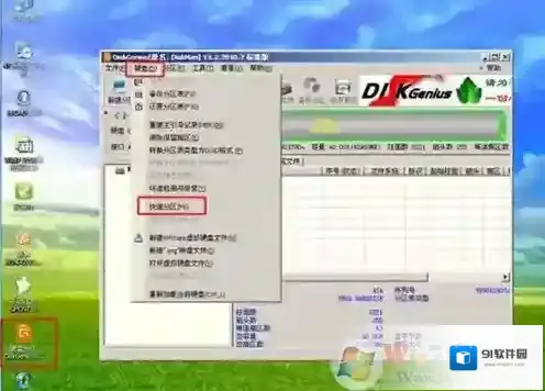 10、进入pe系统,双击硬盘分区DiskGenius,点击硬盘-快速分区;