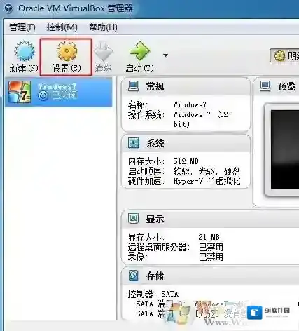 7、新建了一个win7虚拟机,点击“设置”