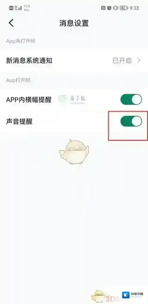 4、点击声音提醒后的绿色按钮,待显示灰色即可关闭,详见下图所示。