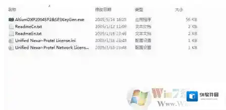2、下面,如果不想看我写的步骤的话。。。就可以打开ReadmeCn.txt跟着做啦~。虽然如此但我还是把剩下的步骤写完~。打开AltiumDXP2004SP2 SP3KeyGen.exe,界面如下: