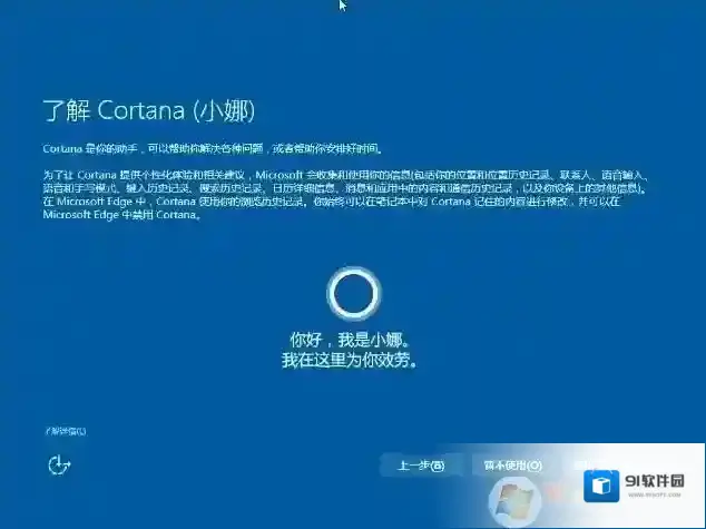 12、Win10的一大特色:Cortana(小娜)语音助手。这里可以选择使用还是不使用,体验Win10,我想总不能把小娜关闭吧。