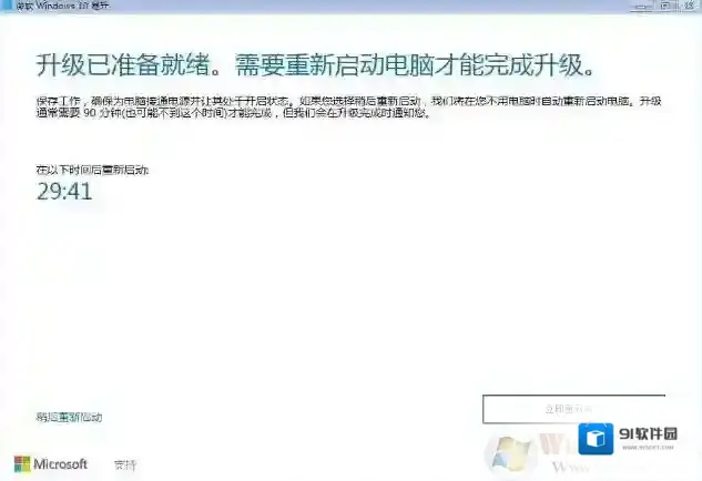 9、以上步骤完成后提示用户重启电脑进行下一步的操作,未操作一段时间后将自动重启进入更新过程。