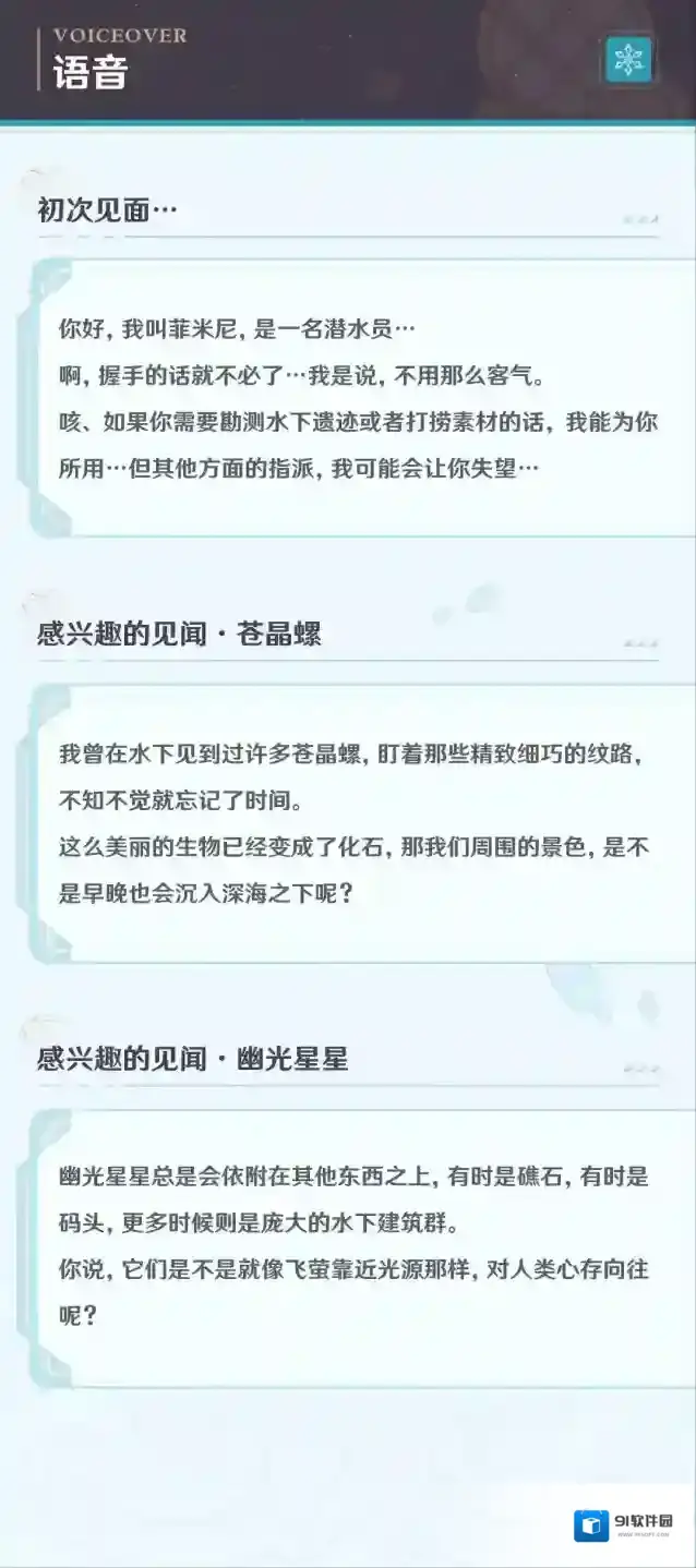 原神 「潜怀遐梦」·菲米尼–「想去无人的海底,一个人安静地待着…」