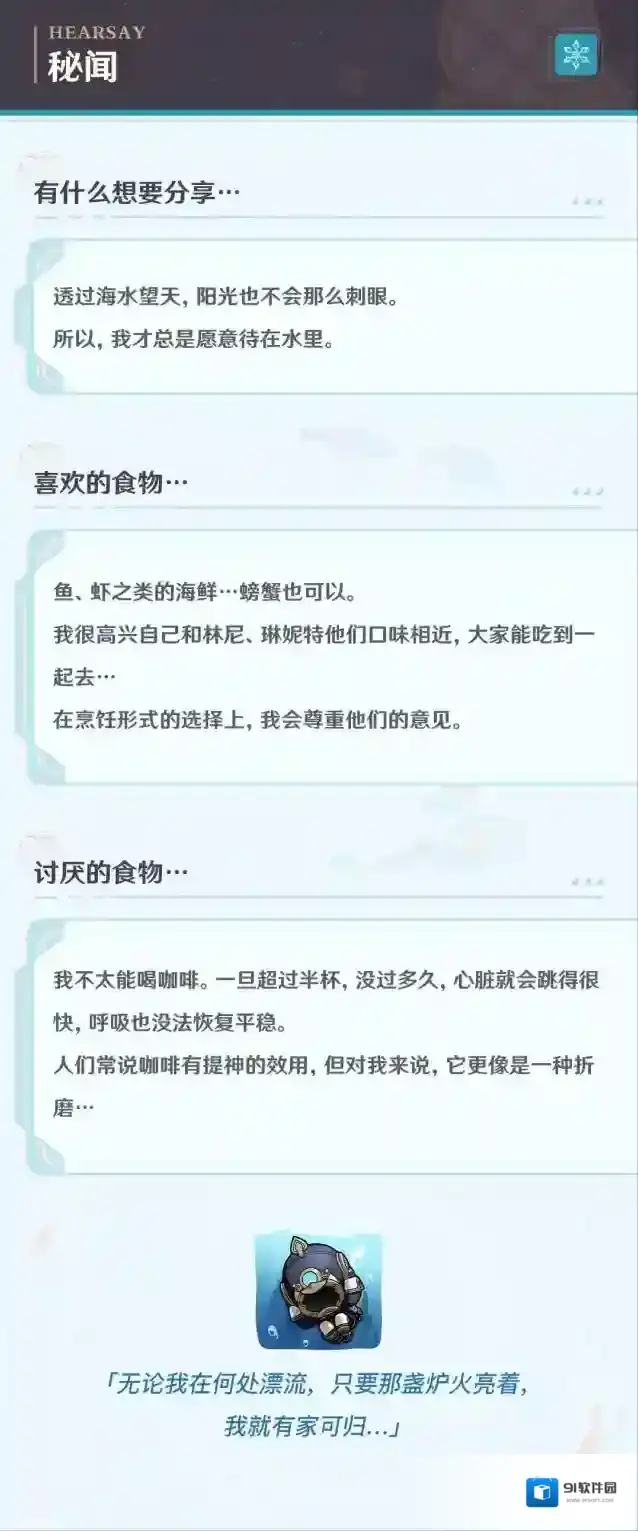 原神 「潜怀遐梦」·菲米尼--「想去无人的海底,一个人安静地待着…」
