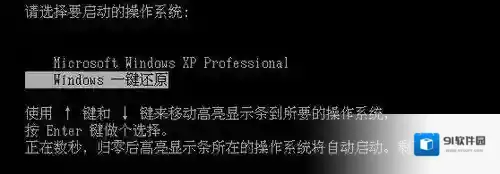 7、当然,也可以在开机的时候上下键来选择Windows一键还原操作。