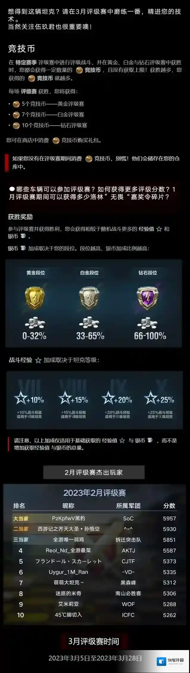 评级赛改革的序幕正式拉开!但请别慌,重点内容依旧保持不动。您依然可以参与持续一个月的狂欢,并获得大量奖励!金币、涂装、附件与闪耀的洛林无畏都是您的囊中之物。快去高手过招,提升实力吧!