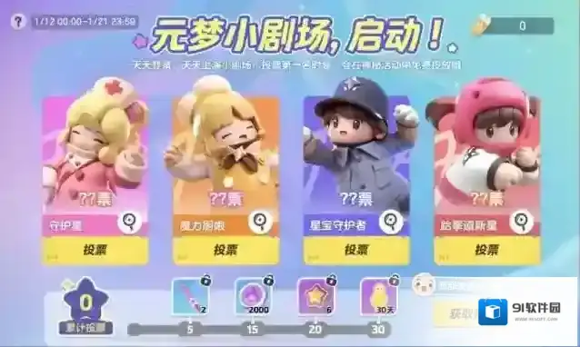 得票第一名的时装将在神秘活动中免费发放,星宝们快通过投票,决定自己在小剧场中扮演的角色吧~投票立得时装4选1限时体验,抢先试穿新时装,好不好上身就知道!