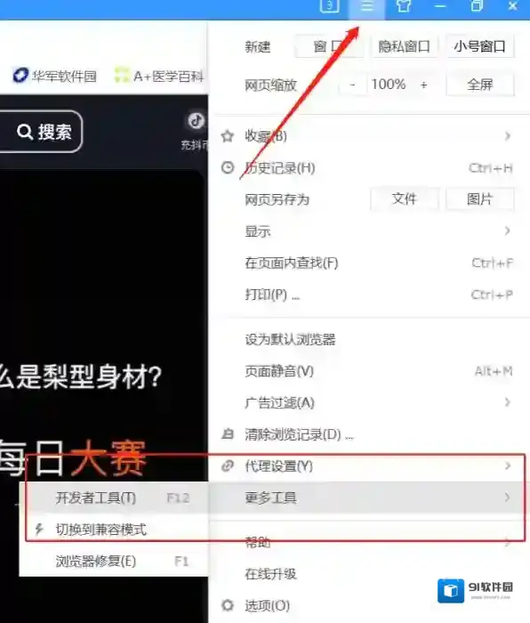 第2步,在浏览器页面的右上角,找到“开发者工具”这个选项,也可以使用快捷键f12直接打开“开发者工具”。